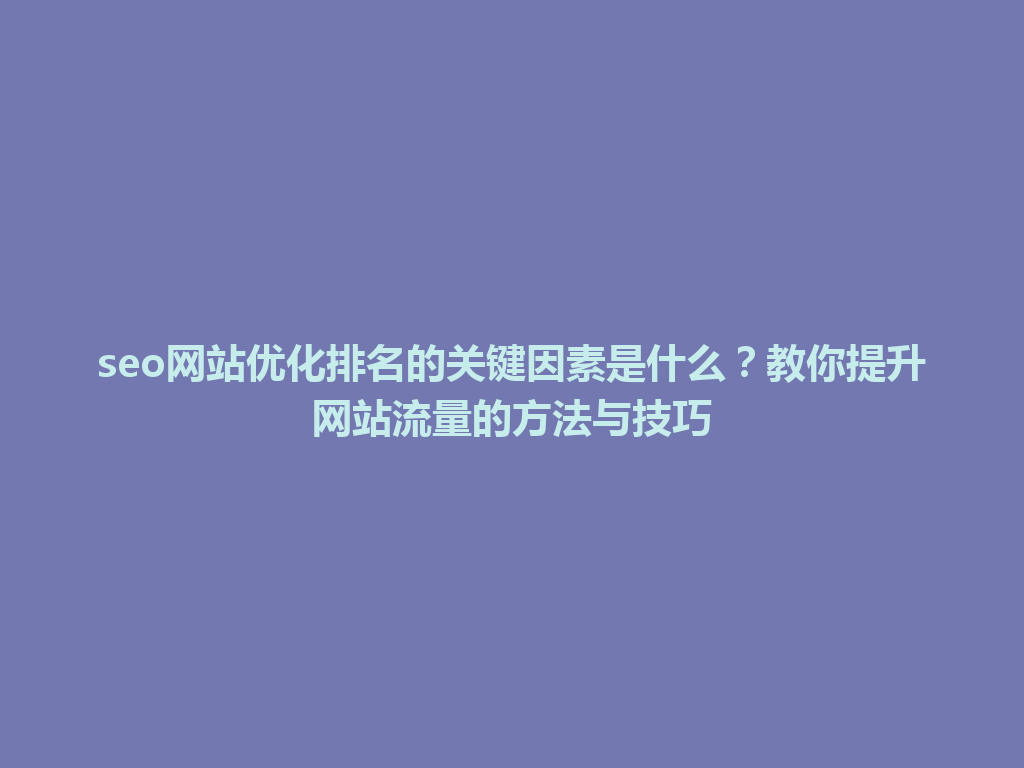 seo网站优化排名并不是一个简单的技术问题,而是一个系统性工程。通过提升内容质量、优化链接结构、加快加载速度和改善用户体验等策略,可以显著提升网站流量。如果能够善用这些关键因素与方法,定会在激烈的市场竞争中脱颖而出!
